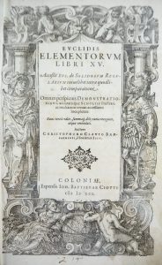 EUCLIDES. Euclidis Elementorum Libri XV. Accessit XVI. de Solidorum Regularium cuiuslibet intra quodlibet comparatione. … Nunc tertio editi... Auctore Christoforo Clavio Bambergensi.Colonia, a spese di Giambattista Ciotti, 1591.