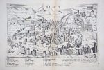 Very RARE ORIGINAL EDITION Great copy. This is the first atlas with city maps produced in Italy and collects perspective views from Venice to Constantinople, from Naples to Mexico City, called Timistitano. The quality of the engravings, many signed by Domenico Zenoi, is remarkable and most maps are accompanied by a caption that attests the credibility, stating that plants are made from real documenting precisely what actually you can see. Rome is depicted in four different ways, the ancient city, the modern, Castel Sant'Angelo and a view of the Borgo bird in flight; other cities look like battlefields, with significant strategic interest buildings shown in the legend. The work is also very important for the history of the fortifications.