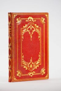 8vo wide, mm. 235x165; Splendid binding signed ‘Rivière & Son’, red morocco, spine with ribs and golden sections, covers with frames, edges, golden inside cover, marbled end papers; pp. [12, inclu. Half Title and Title page], 84. Frontispiece, Head Piece with dedication with device of the princess de Lamballe, 4 copper plates at full page, 4 culs-de-lampe, all in copper.
