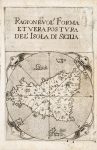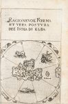 ORIGINAL ILLUSTRATED EDITION. This rare treaty provides geographical concepts, science and mathematics. The geographical part is the main body of the work: the 28 maps depicting the main islands of the Mediterranean represented with the unusual circular shape, are finely carved by Michelangelo Marelli. Each map is enclosed within an ornamental frame, and shows the lines of the winds: the title, at the top, is expressed by the formula reasonably 'Forma et true posture of the Island.