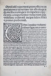 Sarton: “The De Mutatione aeris. might be called a traitise on astrological meteorology. Pietro de Abano (1250 - 1316) was primarily an astrologer, but he had a good knowledge of astronomical theory, was genuinely interested in science and medicine. He translated Hippocratis (pseudo Hippocrates) de medicorum astrologia libellus, Venice, 1485.”