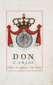 Illuminated manuscript on vellum, 17964 cc. nn., last blank. On the front side of the first card stamped emblem of King Charles IV within drapery partially illuminated surmounted by a crown. Sharp writing chancery, text frame triple red thread. At the direction of the third card signatures of royal scribes.