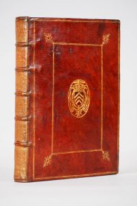4-to, mm. 255x195; contemporary armorial binding, full red morocco, with framing covers in the style 'du Seuil', gold emblem in the middle, ornate back to small irons, entirely gilded cuts; unnumbered 10 pages, including half-title and engraved Frontispiece, p. 414, 2 blank, [4, Index].