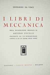 LEONARDO DA VINCI. I libri di Meccanica nella ricostruzione ordinata di Arturo Uccelli preceduti da un'introduzione critica e da un esame delle fonti. Con 2515 disegni ricavati o ridisegnati dagli originali. Milano, Hoepli, 1940 - XVIII.