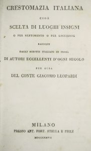 LEOPARDI, Giacomo. Crestomazia italiana. Milano, Antonio Fortunato Stella e Figli, 1827.