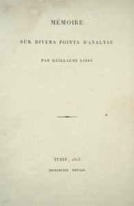 LIBRI, Guglielmo. Mémoire sur divers points d'analyse. Turin, Imprimerie Royale, 1823.