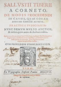 [Law] MASANIELLO-TIBERIO DA CORNETO, Sallustio. De modis procedendi in causis.Roma, Stefano Paolini, 1607.