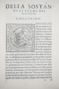 MEMMO, Giovanni Maria. Tre Libri della Sostanza et Forma del Mondo.[at the end:] Venezia, Giovanni de Farri,& fratelli, 1545.