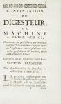 [Pressure Cooker] PAPIN, Denis. La Manière d'amolir les os et faire cuire toutes sortes de Viandes … Continuation du Digesteur ou Manière d'amolir les os Seconde partie.Amsterdam, Desbordes, 1688.