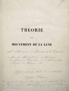 PLANA, Giovanni. Théorie du Mouvement de la Lune. Tome Premier [-Troisième]. Turin, Imprimérie Royale, 1832•4 Volums 4to including the Supplément. 3 vols. 4to, mm. 285x220; Original publisher binding, with ornament fram on the covers, Titles...