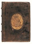 4to, mm. 222x157; armorial binding of the XVII th century in full brown leather, Double gold frame at the sides, large coat of arms in gold , gold monogram in the spine, gold edges; three shares in a volume; pp. 80 Not numbered, 350, ie 352; 65 maps engr. in copper; 28 Not numbered leaves; pp. 65, 3 white. Printer’s mark on the Title-page,