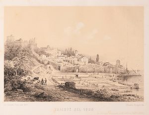 Opera beautifully illustrated with lithographed plates from Colombo Coen on designs of Rieger, Kirchmayr, Gatteri and Marangoni: perspective views of Trieste in different historical periods, picturesque views of the city and its surroundings, coins and costumes.