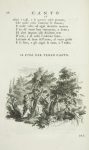 The oval portrait of the poet is taken from the famous painting by Annibale Carracci and is designed by P. Antonio Novelli. Each of the 20 songs a plate refers to the text, engraved by Jacopo Leonardis drawings by Bernardo Castello; the arguments are within a elegant engraved border and the first initial of each song is finely cut and historiated on copper; also 95 scenes of the poem are illustrated by fine half-page engravings, interspersed with the text. The invention and the design of 'frontispiece, the portrait and the wonderful vignettes in the text are by Novelli, all incisions are by Leonardis.
