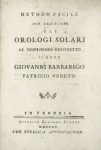 TOALDO. Giuseppe. Metodo facile per descrivere gli Orologi Solari al nobilissimo giovinetto Giovanni Barbarigo patrizio veneto. Venezia, Storti, 1790.