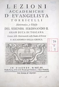 TORRICELLI, Evangelista. Lezioni Accademiche. Firenze, Jacopo Guiducci e Santi Franchi, 1715.