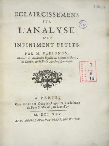 VARIGNON Pierre. Eclaircissemens sur l’Analyse des Infinement Petits. Paris, Rollin, 1725.
