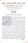 In-4to, mm. 215x150; Legatura coeva piena pergamena, tit. mss. al dorso, unghie; pp. [24], 426, [50]. Marca tipografica al frontespizio e due marche tipografiche al fine: una al termine del testo, l'altra al termine degl’indici; la prima con traccia di inchiostro trasversale. Al primo foglio di guardia, curiosa annotazione di mano antica che riguarda altro libro.