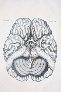 Folio, mm. 330x220; Contemporary full calf binding, spine with 6 ribs with ornaments and golden titles, sprayed edges; pp. 18 nn., 252, 2 nn. In the opening beautiful portrait of the Author by Boulanger, wide enraving at full page out text, with the Cardinal coat of arm of Pierre de Bonsy dedicatee of the work, 30 copper plates, some within the text but for the most folded out text, depicting the nervous and cerebrospinal system. Note of ancient possessor in the Half Title, Ex-libris udentify at the Title-page.