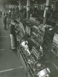 Doisneau, Fregnacq, F.Girard, René Jacques, Pierre Jahan, J.Lang, Raux, Willy Ronis, Roger Schall, André Steiner, Jean-Pierre Sudre, René Zuber. Reliure crème d’éditeur avec titre doré sur le premier plat et le dos. On joint un tirage argentique (24 x 18,5 cm) d’une chaîne de montage automobile, avec cachet « Robert Doisneau-Montrouge » au dos.