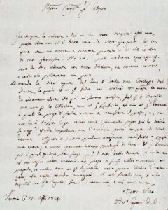 Toccante perorazione del massimo teorico del Purismo. In questa lettera autografa firmata, datata Verona li 12 agosto 1824 Antonio Cesari parla delle sue opere ma anche delle difficoltà finanziarie in cui versa in quel momento.
