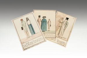 COSTUMI – Tre curiose scene di costumi con indovinelli. Acquarelli. Inizio ‘800.