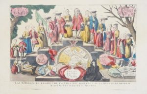 Rigoli: “Le figure dell’uomo e della donna sono disposte in coppia sui gradini della scala, dieci anni d’età per ciascun gradino, dalla culla sino ai 100 anni… La Raccolta conserva due esemplari di questa incisione, uno colorato e l’altro non colorato, sempre in lingua spagnola, destinati all’esportazione.”