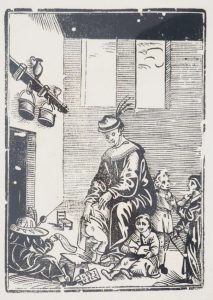 È raffigurato l’interno di una casa con una madre seduta attorniata da cinque bambini di diverse età. I Soliani sono una famiglia di tipografi modenesi.