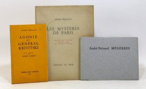 • Agonie du Général Krivitski. Cinq dessins de André Masson. [Paris], Pierre-Jean Oswald, 1960 ; in-8, broché, couverture jaune.