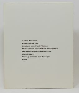 FRÉNAUD (André). Unteilbares Teil. Deutsch von Paul Pörtner. Holländisch von Robert Franquinet. Mit sechs Lithographien von Karel Appel. Köln (Cologne), Verlag Galerie der Speigel, [1961] ;