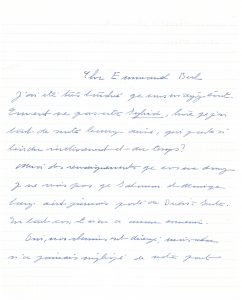 Elle a été très touchée par la lettre du poète ; (…) Comment ne pas citer Sylvia, livre que j’ai tout de suite aimé, qui parle si bien du vieillissement et du temps (…). Je ne cRois pas que Salomon et Monique Lange aient jamais parlé de Drieu à Sartre. En tout cas, il n’en a aucun souvenir. Oui, nos chemins ont divergé, mais cela n’a jamais impliqué de votre part aucune hostilité personnelle (…).