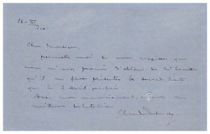 Claude DEBUSSY. 1862-1918. Compositeur. C.A.S. S.l., 16 mars 1910.