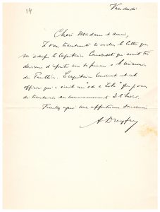 BELLE LETTRE TRÈS VISUELLE. Au moment du transfert des cendres de Zola au Panthéon. Dreyfus transmet la lettre du capitaine Converset désireux d’assister avec sa femme, à la cérémonie du Panthéon ; il ajoute à sa faveur que cet officier a composé une « ode à Zola » que je vous ai transmise au commencement de l’hivers (…).