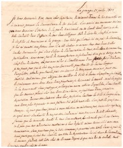 LONGUE DISCUSSON sur l’implantation de MOUTONS MÉRINOS dans le pays et le développement de manufactures. Lafayette est heureux d’avoir fait la connaissance de M. Andelle ; (…) Il est arrivé au moment même que nous recevions L’Histoire de la Garde nationale où M. Comte rend justice à sa belle conduite dans l’affaire de mes deux collègues. Il a fait visiter ses fermes à Mde de Corcelles et sa famille ; Nous avons parlé de manufactures et je voudrai bien qu’à Nozay, notre chef lieu de canton, il put nous aider à l’établissement d’un petit foïer d’industrie. Je ne pense pas que ce soit un point convenable pour traiter les laines longues d’Angleterre, attendu que tout le païs est couvert de troupeaux mérinos (…). Moi-même qui soigne un millier de bêtes à laine superfine, je craindrais le cRoisement avec une race dont pourtant je reconnais le mérite (…). Il remercie le capitaine de ses encouragements pour son élection dans le pays ; Après avoir souhaitté de ne pas être condamné aux travaux de cette Chambre, j’avoue que les nouvelles bontés de mes commettants, les obstacles qu’ils ont vaincus et le prix que nos adversaires mettaient à leur défaire, m’ont réconcilié avec ma nomination (…).