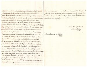 Elle demande de lui en faire le reproche afin qu’il prenne garde pour les prochaines fois. Ne revenant pas à Paris avant Toussaint, elle économisera ses robes d’automne ; elle lui commande pour son retour, une robe de satin rose et une de satin blanc à faire garnir de point à aiguille et de point d’Alençon, avec dentelles. J’ai marqué avec une cRoix dans l’article de Le Normand, les choses qui servent pour ma toilette, le reste est pour être inscrit aux dépenses particulières (…).