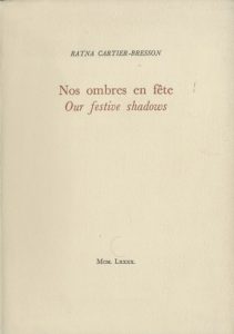 Cartier-Bresson, Ratna (1904-1988) - Cartier-Bresson, Henri (1908-2004) Nos ombres en fête. Our festive shadows. Thierry Bouchard, Losne, 1990. In-8 (24 x 16,5 cm). Édition originale, brochée, dédicacée et signée par Henri Cartier-Bresson....