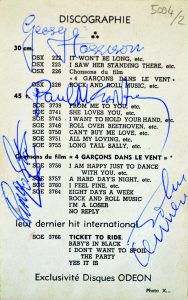 Sur une carte postale des années 60 les représentant, les 4 membres des Beatles ont apposé leur signature au verso : Paul McCartney, Ringo Starr, George Harrisson et John Lennon. Paul Mc Cartney a également signé au recto.
