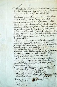Très intéressant document sur l’insurrection fédéraliste d’Avignon, signé conjointement par 10 membres des « autorités constituées actuellement dans la ville d’Avignon » en réponse à la sommation du général Carteaux. Ils « déclarent que loin que la ville soit en rébellion, elle est amie des loix et dévouée aux autorités légitimes. Tous les citoyens qui la composent, toute la force armée qu’elle renferme, tous les membres des autorités qui la régissent sont prêts à donner leur vie pour le soutien de la République une et indivisible, pour le salut des personnes et la conservation des propriétés. Nous ne reconnoissons plus la Convention nationale depuis le 31 may dernier, parce qu’elle n’est plus dans son intégralité. Nous ne sommes pas rebelles pour cela, au contraire, en vrais Républicains français, nous désirons que la représentation nationale recouvre cette unité, cette indivisibilité dont elle est privée. Nous vous requerons de vous retirer et de ne pas nous mettre dans la dure nécessité de repousser la force par la force ». Suivent les signatures des dix représentants.