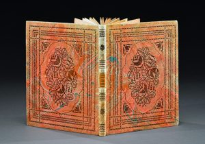 Un volume, in-4, pleine reliure estampée d’un décor floral, cloisonné, sur fond rose flammé de vert et de blanc. Dos à deux nerfs sur lequel se poursuit le décor des plats et portant une pièce de titre en maroquin havane. Tête dorée, non rogné, couverture illustrée en couleurs et dos conservés.