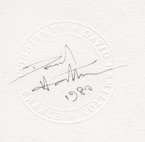 Hamilton, David (né en 1933) Jardin secret. Éditions AGEP, Marseille, 1980. Grand in-4 (31 x 30 cm). Édition originale, datée (1980), signée et agrémentée du timbre sec du photographe sur grand feuillet blanc rajouté. Photographies...