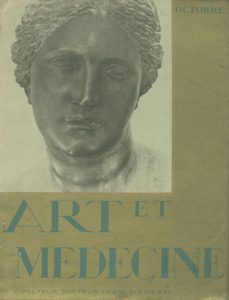 Couverture souple illustrée. A Paris. Art et Médecine - octobre 1931. Revue mensuelle réservée au corps médical. In-4 (31 x 24 cm). Édition originale, brochée. 56 pp. Photographies de André Kertész (25), Germaine Krull (6), Man Ray (4), imprimées en héliogravure. Couverture souple illustrée (usures).