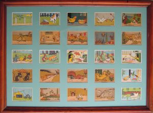 Ensemble de 25 images « bons points » en couleurs présentées sous cadre.