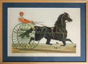 CHROMOS. Voitures à Cheval. Réunion de 3 grandes chromos représentant un sulky, un tramway à cheval et une diligence :