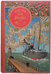 VERNE (Jules). Cinq Semaines en Ballon. Voyage de découvertes en Afrique par trois Anglais. Illustrations par Riou et de Montaut. Paris, Hetzel, s. d. (1895).