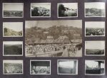 In-4 à l’italienne, reliure cuir de crocodile, dos avec lien. 225 photographies noir et blanc de divers formats, plusieurs en double exemplaire, certaines collées et légendées dans l’album, d’autres jointes à l’album. 46 pages composées de plusieurs petites photos ou d’une seule photo (30 x 40 cm) à pleine page, relatant le voyage et le séjour d’un officier ou médecin (?).