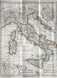 In-8, reliure de l’époque basane flammée, dos lisse orné de fers spéciaux à l’urne et aux instruments de musique, frise en encadrement sur les plats. Coiffes et coins frottés, petits trous de vers sur le mors du second plat. Faux-titre, titre, 153 pp. et 5 cartes dépliantes avec les frontières rehaussées en couleurs. Rousseurs.
