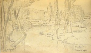 Exemplaire orné sur les pages de garde de deux dessins au crayon de Gaston Balande, avec les indications de couleurs, signés et datés Poitiers 1941, représentant des paysages de rivière (Boivre ou Clain ?) esquissés sur le vif.