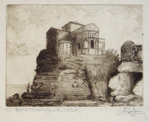 RABRE (Maurice). Réunion de deux eaux-fortes : Les Remparts de Brouage. Église de Talmont s/ Gironde.
