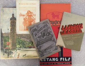 Délice et de Douceur. Paris, [1915]. — In-8, couverture illustrée. Agrafé. Catalogue de confitures, conserves et confiserie de fruits, bonbons, fruits glacés. Couverture salie.{CR}- LANDUCCI & LOTTI. Pistoia. (Italia). Fabrica di forme da pasta alimentari. S.l., (vers 1930). — In-4, 44 pp., couverture imprimée. Agrafé.{CR}Catalogue général bilingue (italien/français) de moules et de machines destinés à la fabrication de pâtes alimentaires. Il est orné de quelques photographies et de plusieurs centaines de dessins des différents types de pâtes qu’il est possible de créer. Couverture légèrement salie. {CR}- LETANG FILS. Établissements Létang fils, ferblantiers, moulistes, mécaniciens. Chocolaterie n°1. Paris, 1934. — In-4, couverture imprimée. Broché. Catalogue de matériel pour chocolaterie : moules divers, machines à mouler… Usures au dos.{CR}- PEUGEOT FRÈRES. Moulins. S.l., 1938. — In-4, agrafé.{CR}Beau catalogue illustré de Peugeot frères, consacré aux moulins à café, à poivre, aux poivrières, aux concasseurs pour graines, etc. Exemplaire parfaitement conservé.{CR}- DUBOIS & FILS. Centenaire de la Société A. Dubois & fils. 1848-1948. Lyon : Librairie Lardanchet, 1948. — In-4, couverture illustrée. Broché.{CR}Ouvrage publicitaire tiré à 1000 exemplaires numérotés, publié à l’occasion du centenaire de la société de tissage et de soieries lyonnaise Dubois & fils, contenant notamment 120 recettes culinaires « de Rosalie ». Couverture illustrée par Pierre FALKÉ et 46 illustrations en noir, la plupart étant des photographies d’Antoine DEMILLY.