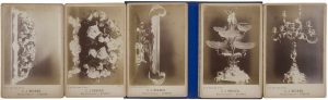 et montées en accordéon, représentant les surtouts de table d’argent exécutés par C. J. Begeer pour Guillaume III, roi des Pays-Bas.{CR}Exemplaire complet du feuillet volant daté d’avril 1889 précisant le contenu de l’album.{CR}Quelques rousseurs. Deux photos en partie détachées.