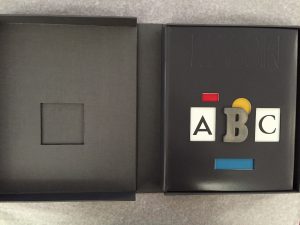 géométriques en creux, dont un cercle jaune et quatre rectangles rouge, bleu et blancs, les deux blancs comprenant respectivement la lettre A et C en gris et séparés par la lettre B en métal collé, dos lisse muet, couverture et dos conservés, étui-boîte de l’éditeur (Atelier Mazarine 1989). {CR}Ouvrage de référence, « Réflexion du célèbre graphiste sur les principes du métier, évocation des grands moments de l’édition française depuis les années soixante » (Actes Sud). Il est illustré de près de 800 reproductions en couleurs dans le texte ou à pleine page.{CR}Un des rares exemplaires numérotés et revêtus d’une pleine reliure en box gris mosaïqué sortant de l’atelier Mazarine.{CR}Exemplaire parfaitement conservé.